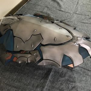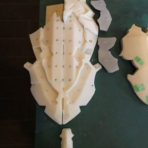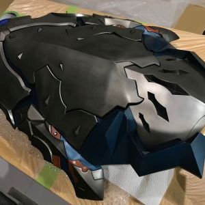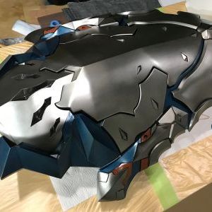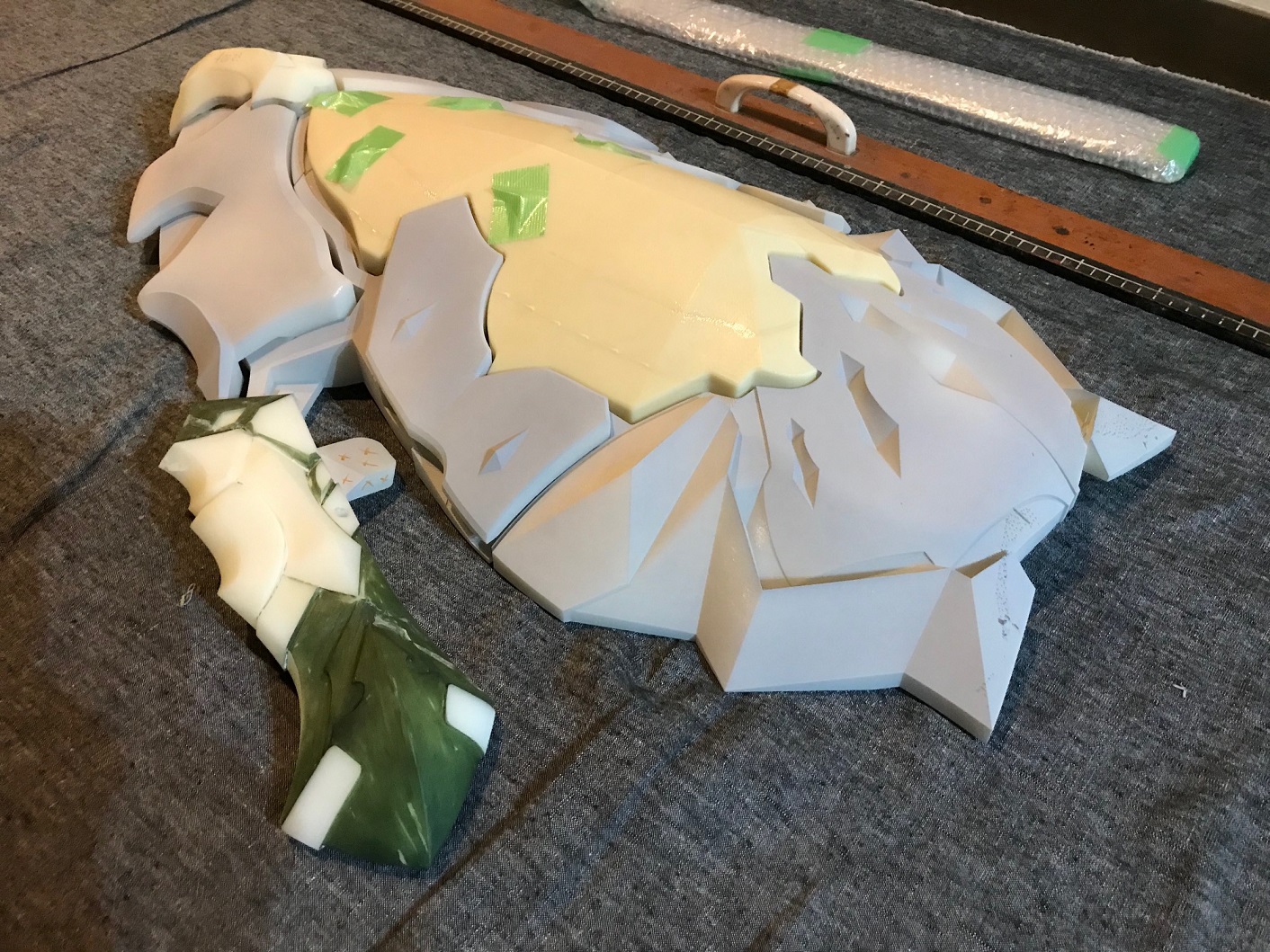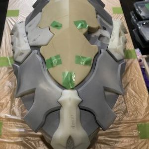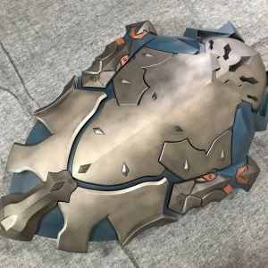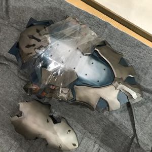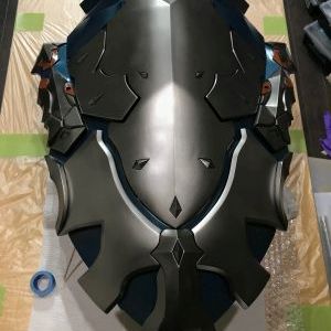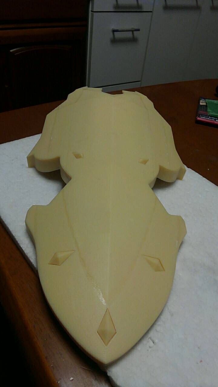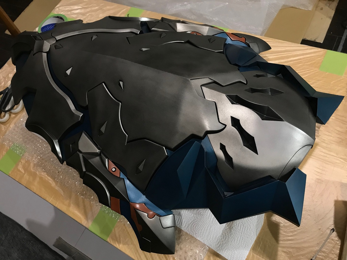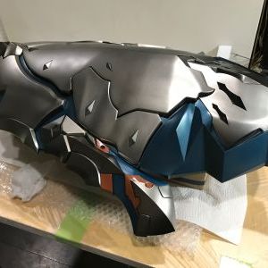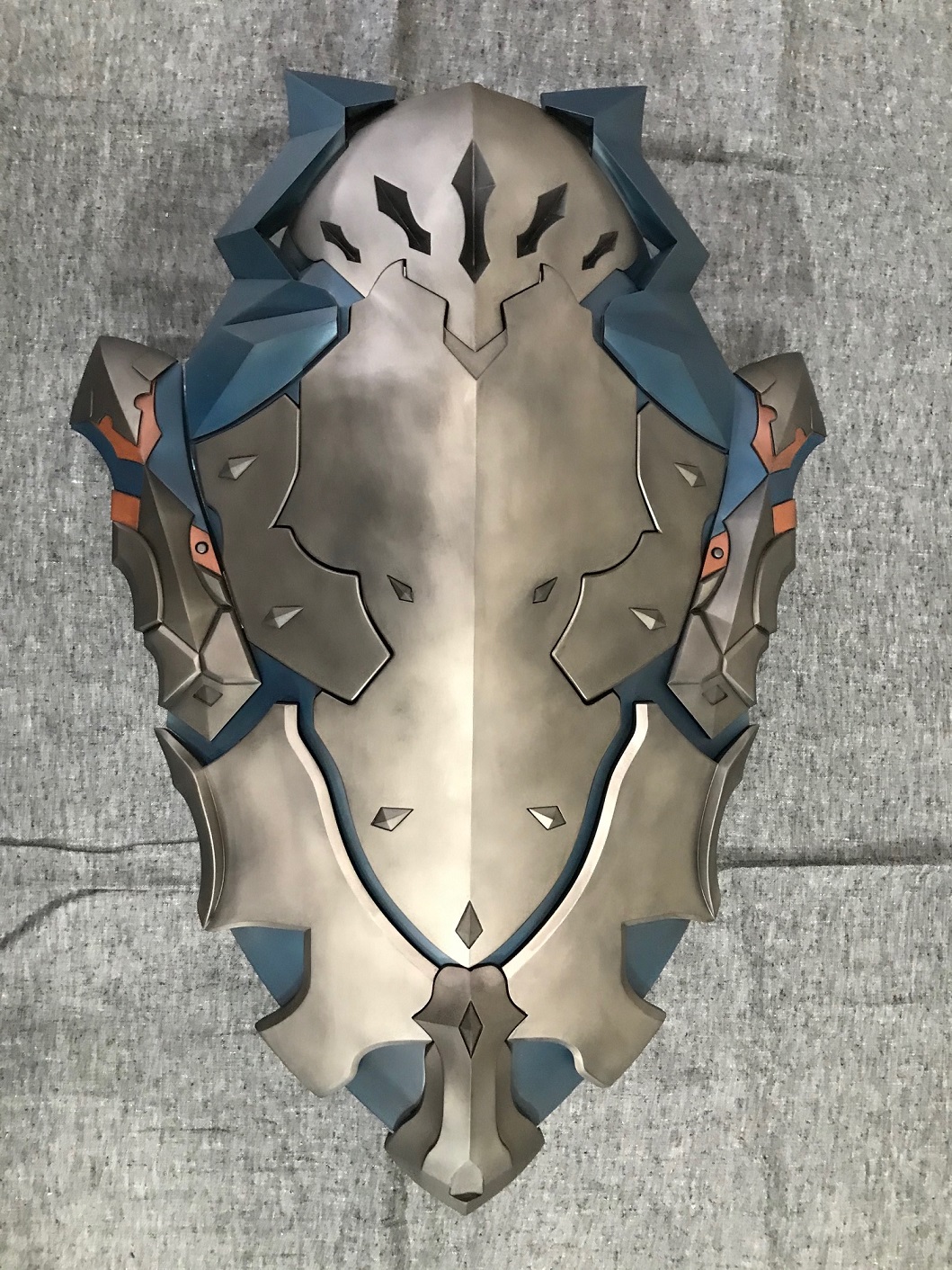 納得がいったところで塗装終了、各パーツの接着を開始します。 盾の真正面にくるパーツは盾をケースに収納し、本体をボルトで固定した後に被せて接着します。