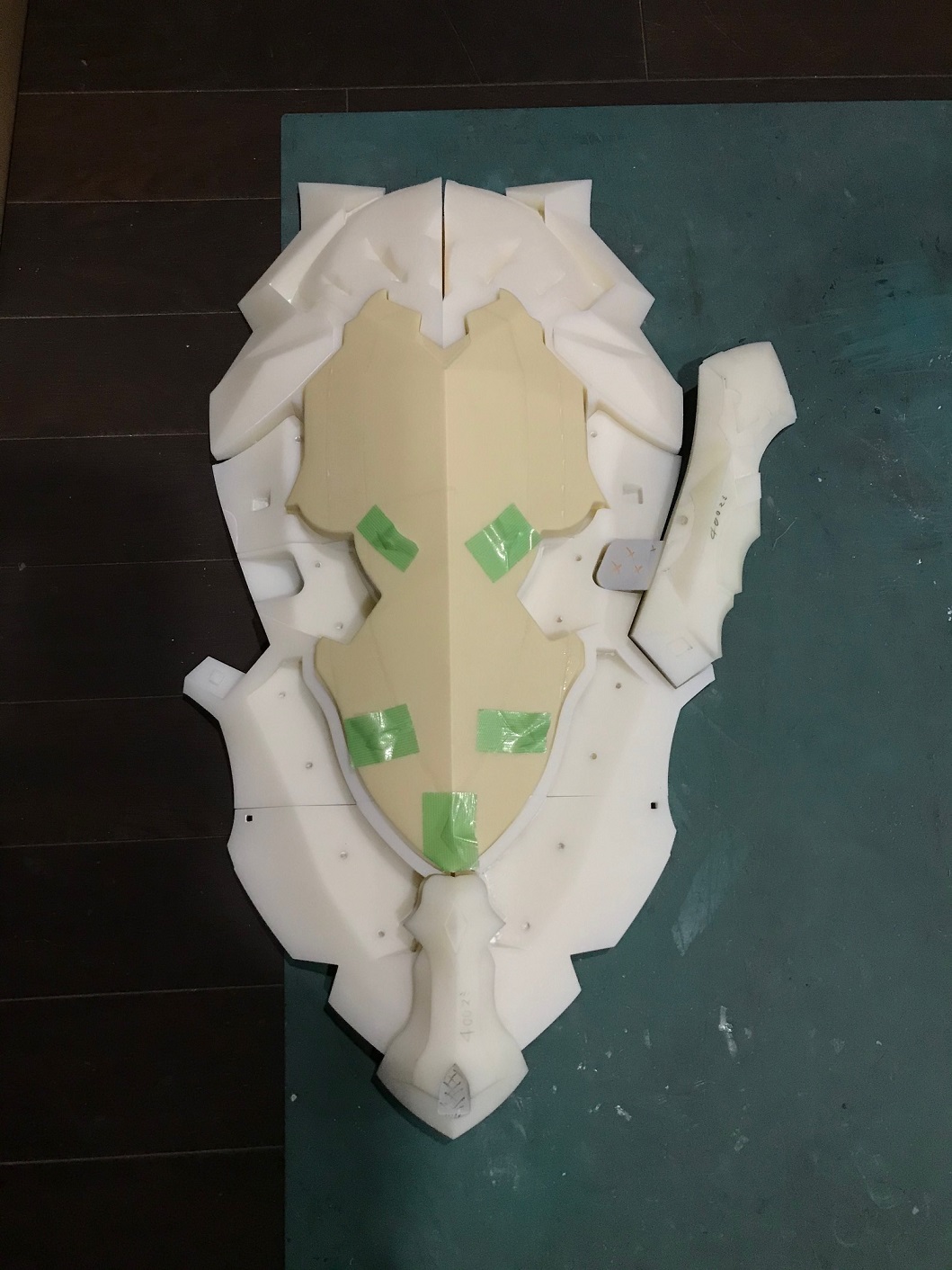 盾をケースに収納し、最後に真正面のパーツを接着します。