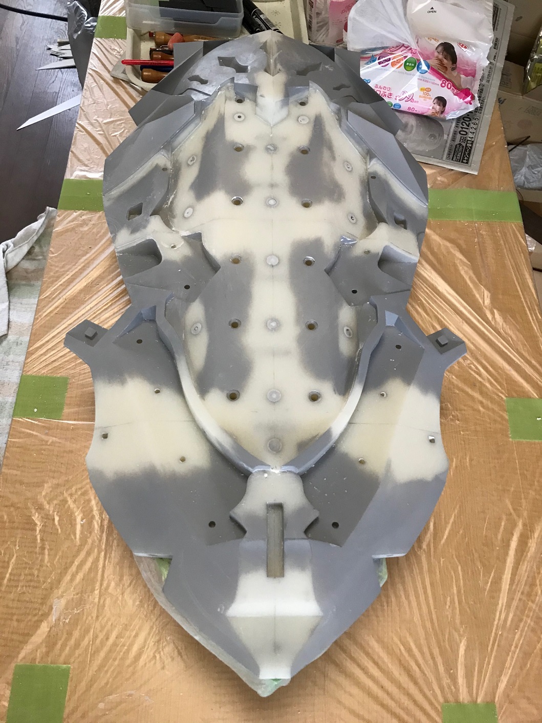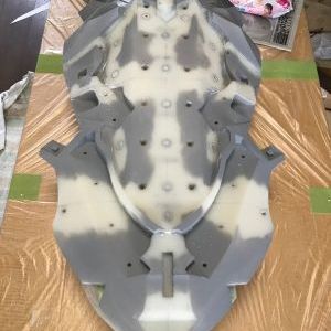 ベースパーツへ3D出力したパーツを接着し、その後研磨→サフ→確認→研磨を繰り返し行います。