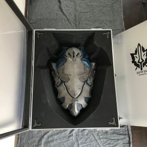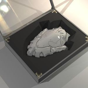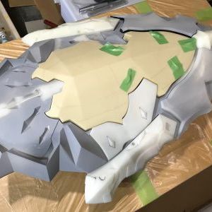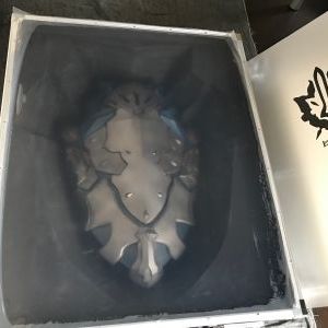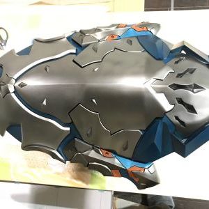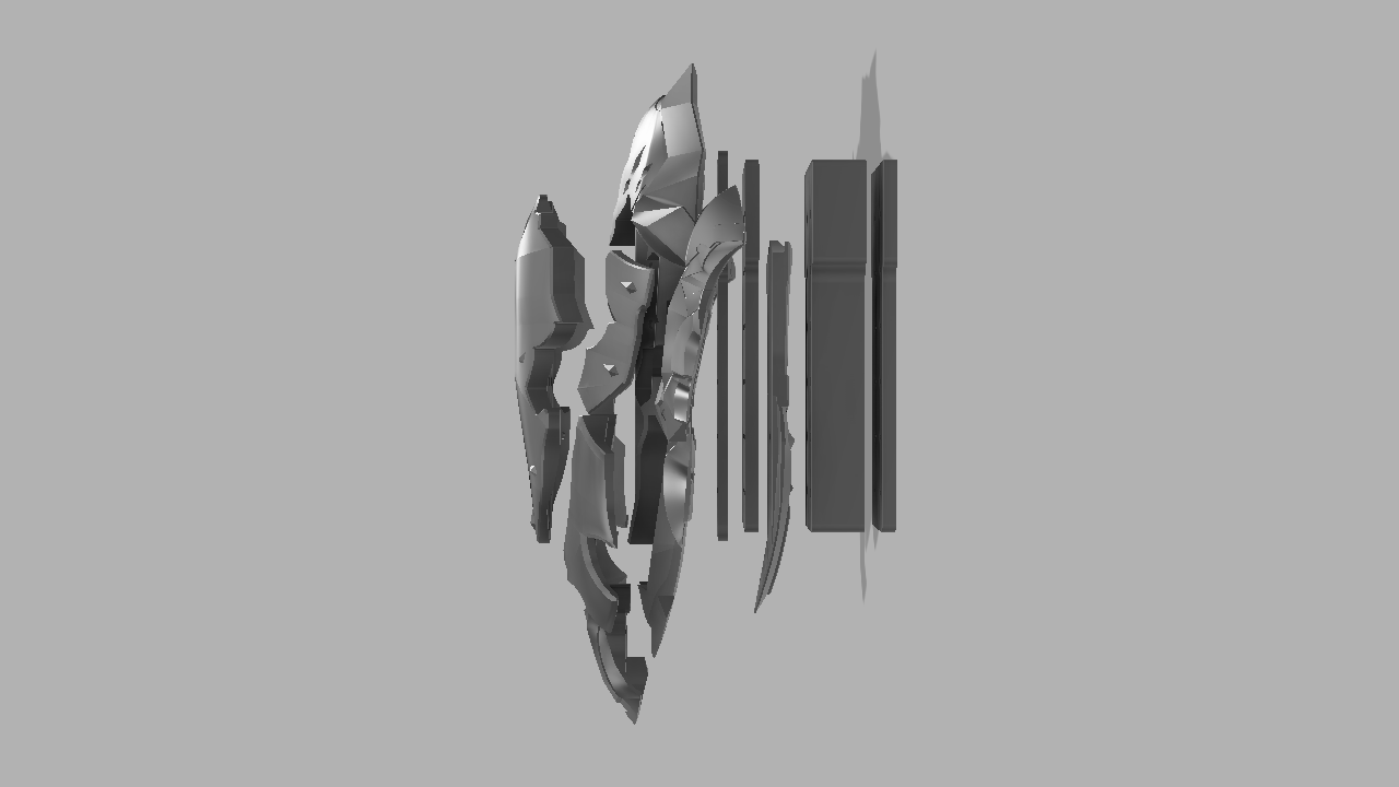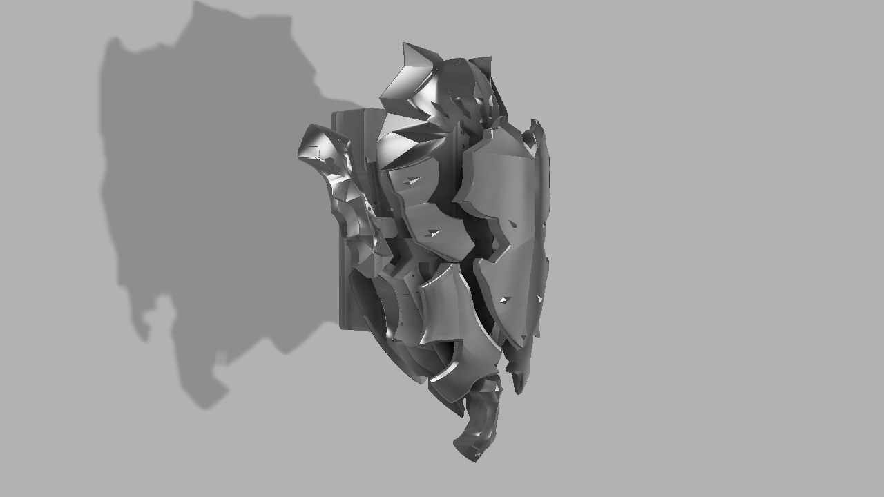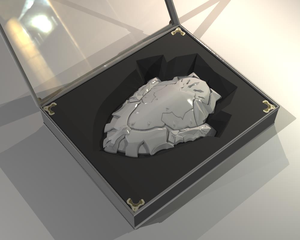 剣と同じく、盾とケースとのバランス、クラスアイコンの位置などを図面上で監修していただいてから制作へと進めます。今回はケースと一体化しているため「展示した時に様々な角度から盾のフォルムを楽しんでいただけるように」などをCGを用いて検討を重ねました。