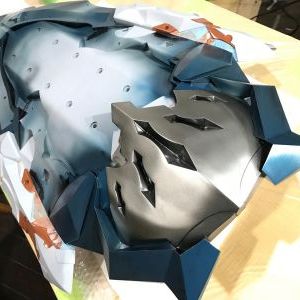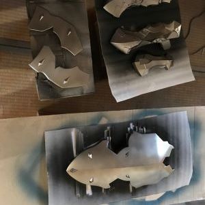 ある程度まで研磨が進んだら3D出力したパーツへ金属芯を縦横に貫通させて骨組みとしパーツ同士を接着します。