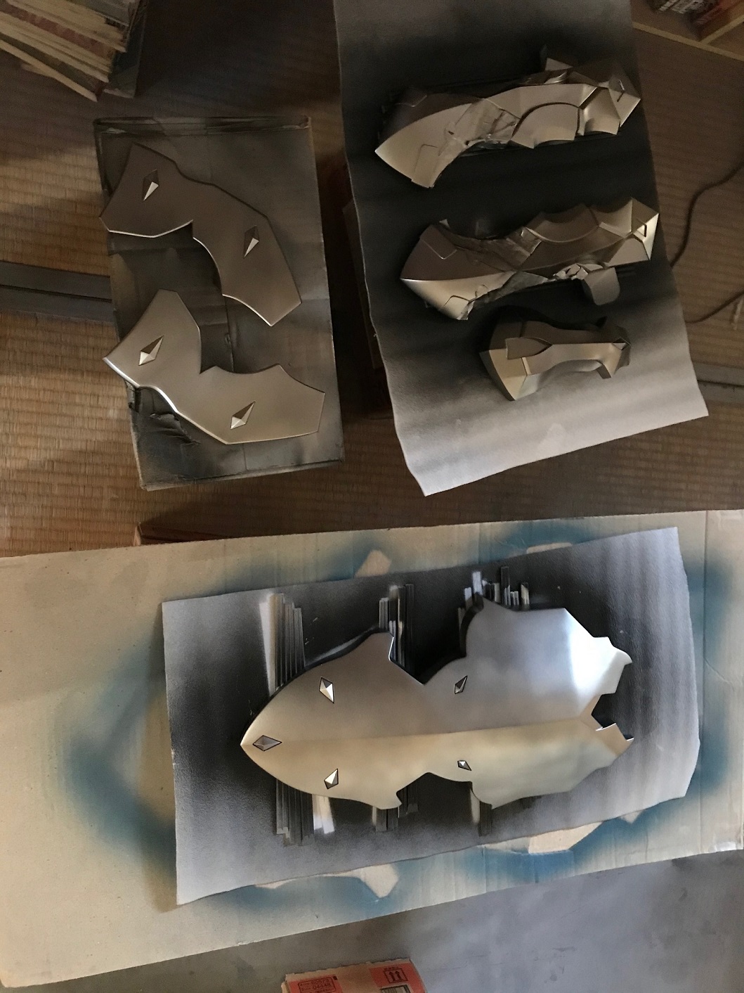 一通りの塗装が終わった段階で既に完成している剣とのバランスや基の資料と比較し統一感が出るように調整を行います。