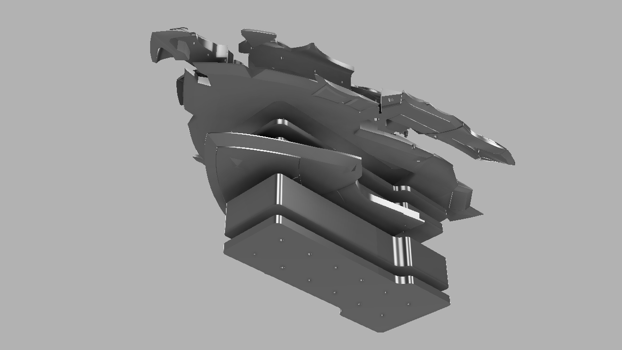 提示頂いた資料を基に1/1にした際にできるだけ見栄えするように全体/各部のバランス等を再調整し、 監修していただいてから製図→3D出力データ化→各種加工へ進めます。 基データの流用はせず、新たに立体化用のデータを作成しました。