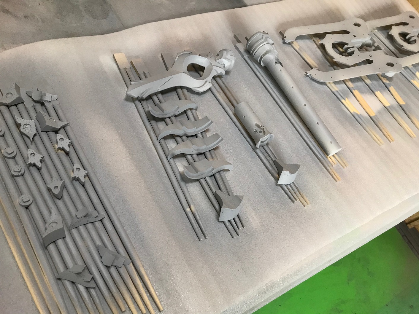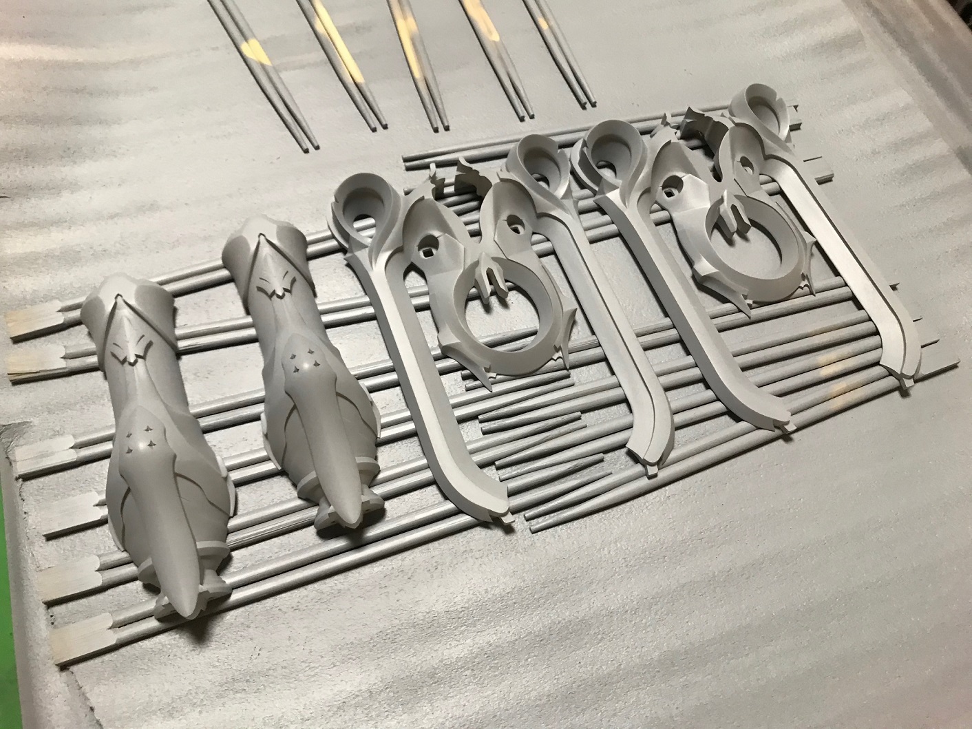 ここまでの工程後に改めて監修していただき、OKをいただいて完成です。 今回はケースから取り出して持てる上に軽くて持ちやすいのですが、非常に破損しやすいデザインかつ、電池ボックス交換用のジョイント部が外れやすいので取り扱い動画も撮影しました。